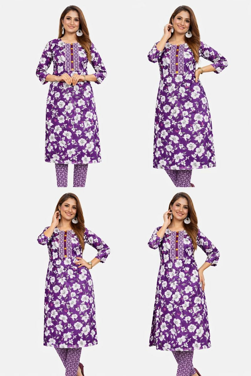 Step into effortless elegance with this Women’s Purple Floral Print Kurta with Matching Pants. Designed for comfort and everyday style, this kurta set features a beautiful all-over floral print that adds a fresh and graceful touch to your ethnic wardrobe.